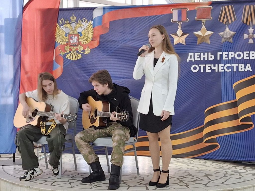 Студенты НТИ проявили активность и в творческих выступлениях. В исполнении Венеры, Матвея и Георгия прозвучала авторская песня преподавателя НТИ, а ныне бойца батальона «Кинжал», подполковника запаса Степанова В.А.