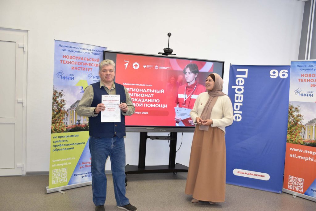 21 октября на базе НТИ НИЯУ МИФИ прошел Муниципальный этап регионального чемпионата по оказанию первой помощи, организованный Движением первых, в котором приняли участие команды из 8 образовательных учреждений Новоуральска, в том числе и команда колледжа НТИ.