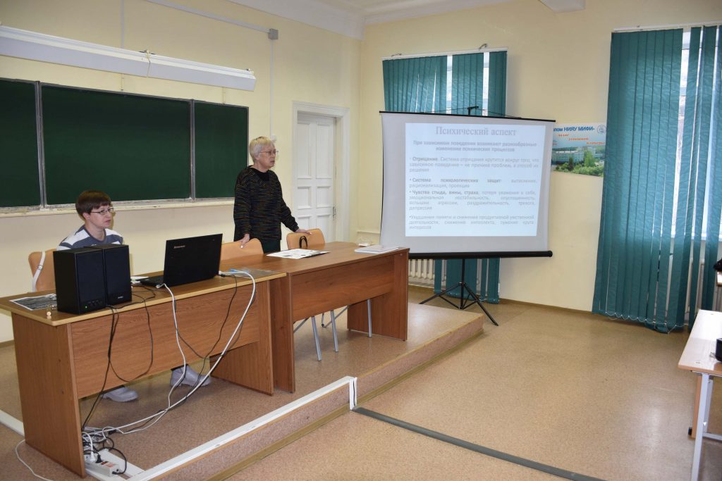 В этот же день специалисты МАУ «ЦДК» М. А. Мизгулина, С. Н. Медовикова провели для студентов НТИ НИЯУ МИФИ лекцию «НЕ Зависимость», на которой рассказали о том, что такое зависимость, предпосылки формирования, симптомы, отличие привычки от заболевания.