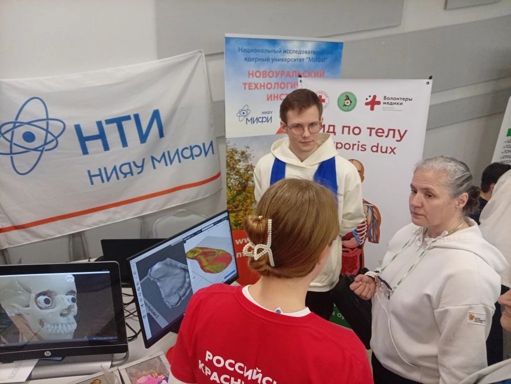 НТИ НИЯУ МИФИ совместно с СОМК участвовали в тематической выставке с опытными образцами диабетических стелек. После просмотра ролика, снятого Медиацентром НТИ НИЯУ МИФИ «ИнфоДрайв, доцент кафедры Технологии машиностроения, к.т.н. , зам. руководителя НТИ Борис Гупалов вместе со студентами Дмитрием Рыжовым и Вероникой Рыбаковой, участниками проекта «Шаги жизни», поясняли гостям особенности создания 3D моделей стелек и последующей печати на принтере. Многих интересовали из каких материалов выполнены стельки, удобны ли они будут при ходьбе, были ли уже клинические испытания на пациентах? Специалисты-медики высказали свои мнения о проекте, который находится в стадии усовершенствования, а студенты успешно представляют его на различных российских форумах и занимают призовые места.