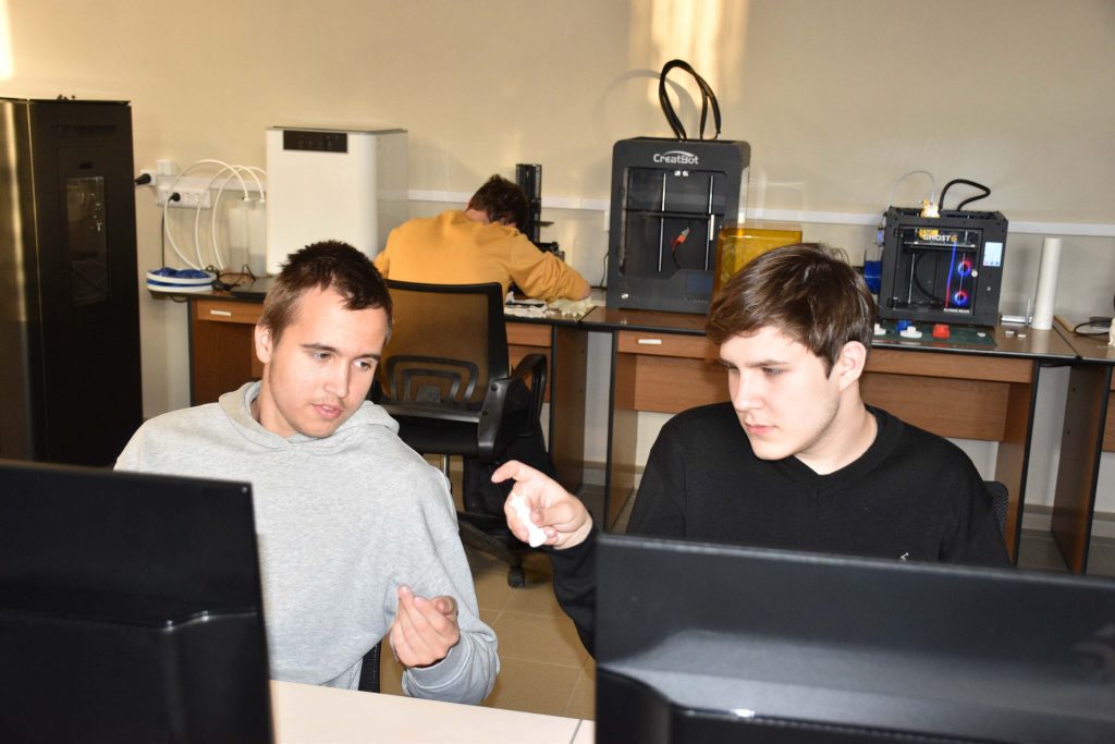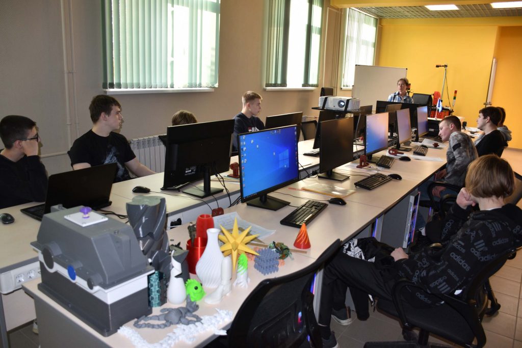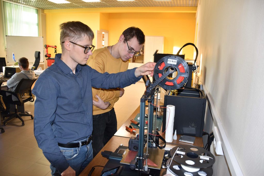 Профпорба проходила в лаборатории аддитивных технологий. Поэтому ребята имели возможность посмотреть, как идет процесс 3D-печати на принтерах лаборатории и внимательно рассмотреть напечатанные детали.