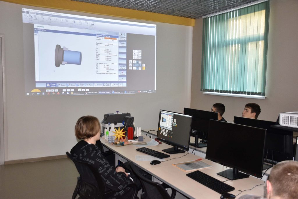 Затем ребята поработали в качестве разработчиков управляющей программы обработки шахматной фигуры «Пешка» в диалоговом режиме на симуляторе Sinutrain, который является полным аналогом системы ЧПУ Sinumerik 828/840D. Они научились создавать контур детали, использовать стандартные циклы обработки, проверять программу в режиме моделирования.
