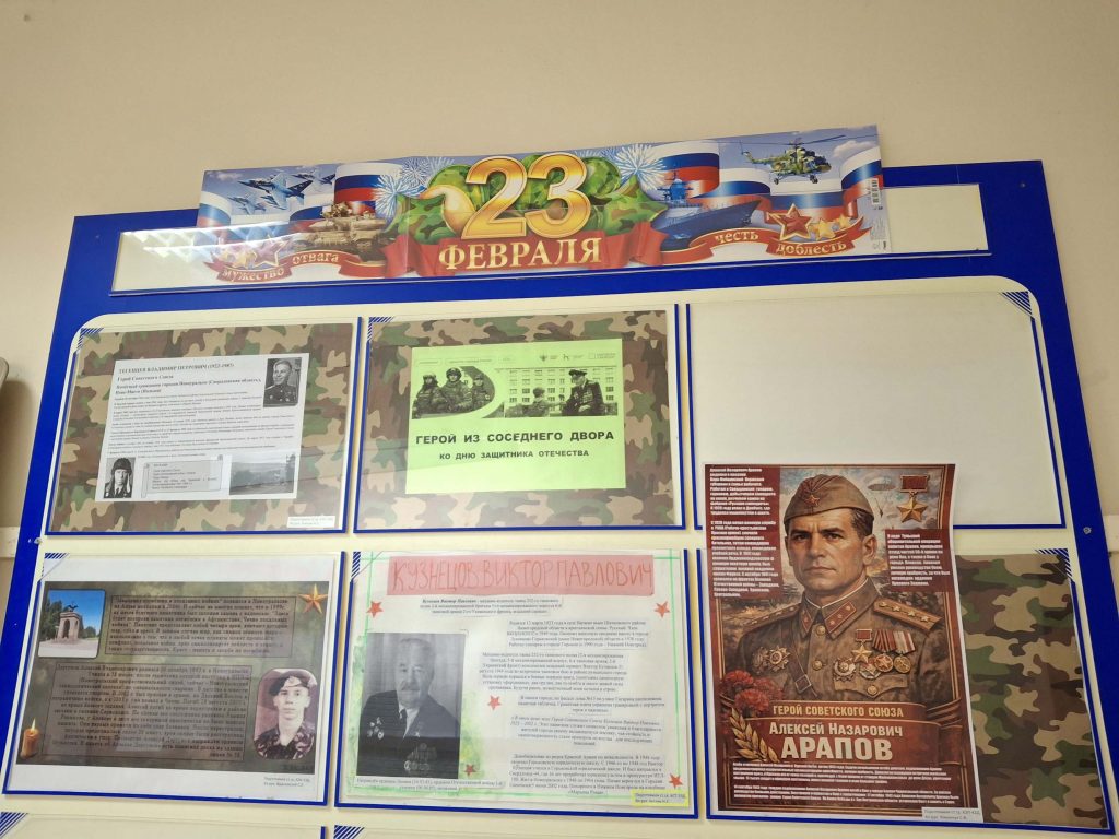 Продолжением «Разговоров о важном» стало оформление студентами плакатов о героях – наших земляках. Эти плакаты ребята разместили на специальном стенде.