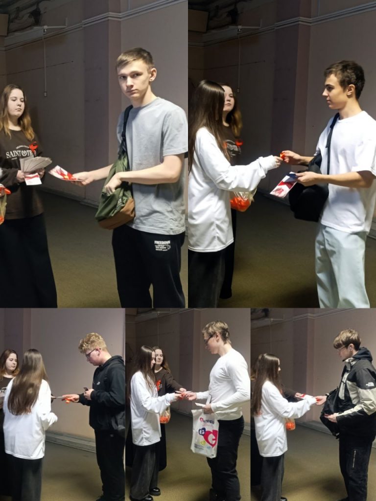 На входе в учебное заведение ребята раздавали символические красные ленты — знак поддержки людей, живущих с ВИЧ, а также информационные буклеты о путях передачи вируса и мерах профилактики. Акция призвана привлечь внимание к проблеме ВИЧ-инфекции, напомнить о важности ответственного отношения к своему здоровью и формировать толерантное, уважительное отношение к тем, кого эта тема касается лично.